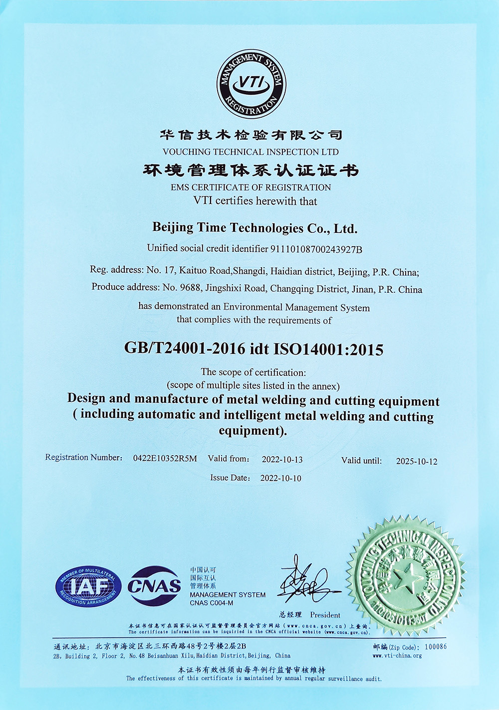 Environmental Management System Certificate