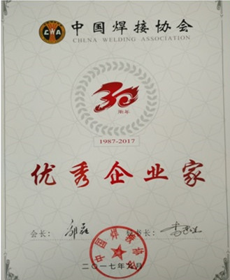 翟波總獲得“中國焊接行業(yè)優(yōu)秀企業(yè)家”榮譽