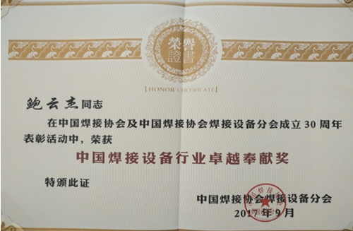 鮑云杰榮獲“中國焊接設(shè)備行業(yè)卓越奉獻獎”榮譽