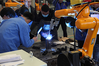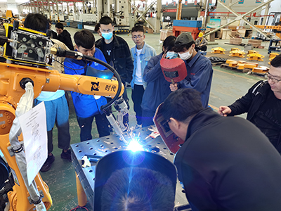 2021年4月26日,北京時(shí)代科技股份有限公司組織開(kāi)設(shè)的2021年第一期手工+機(jī)器人焊接技能提升班在濟(jì)南時(shí)代焊接工業(yè)園開(kāi)課了。全部課程為期5天,授課方式為技師現(xiàn)場(chǎng)授課、學(xué)員實(shí)操焊接練習(xí)。本次課程是時(shí)代公司精心籌劃的一個(gè)提升焊接專業(yè)學(xué)員機(jī)器人操作水平的培訓(xùn)課。授課老師均為時(shí)代公司高級(jí)焊接技師。培訓(xùn)設(shè)備為時(shí)代6公斤弧焊機(jī)器人、時(shí)代PNE61-400氬弧手工兩用焊機(jī),時(shí)代全數(shù)字TDN 5001MB氣保焊機(jī)、A160-350半自動(dòng)氣保焊機(jī)等。參加培訓(xùn)的學(xué)員全部為國(guó)內(nèi)職業(yè)院校系統(tǒng)內(nèi)的年輕學(xué)員和教師。本次培訓(xùn)內(nèi)容主要以實(shí)際操作為主,焊接理論為輔。實(shí)操內(nèi)容包括焊條電弧焊、熔化極氣體保護(hù)焊、鎢極氬弧焊和機(jī)器人熔化極混合氣體保護(hù)焊等。