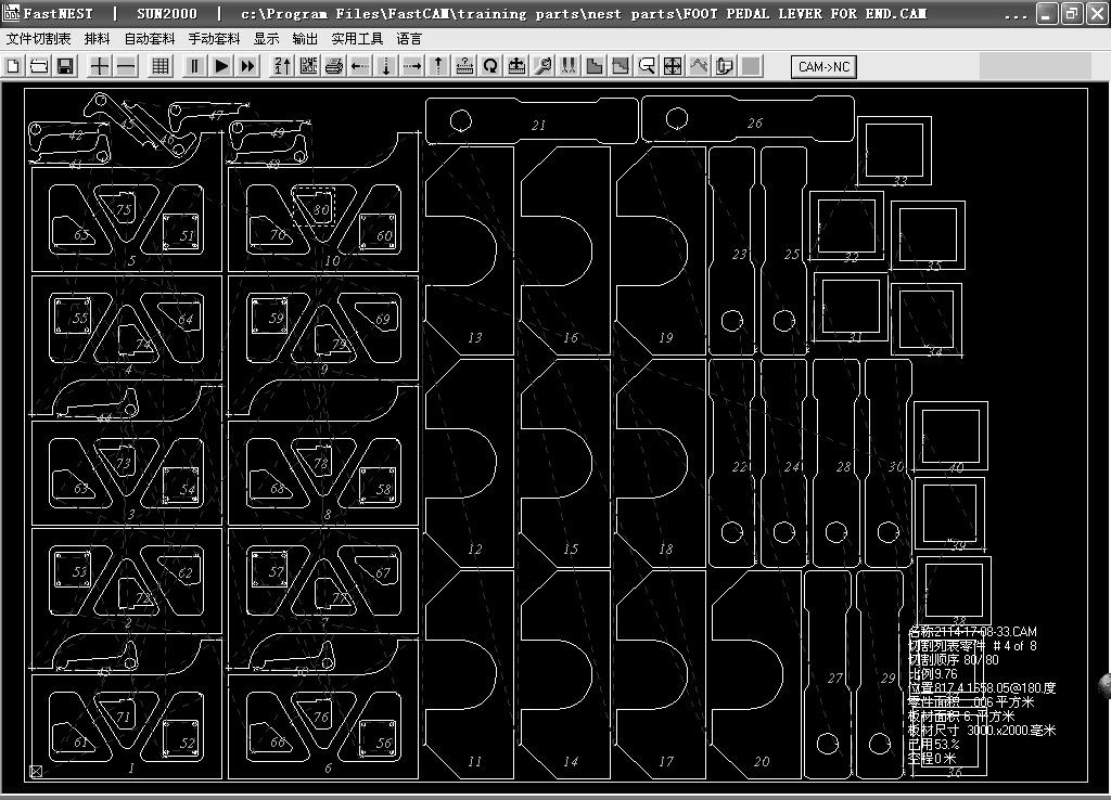 FastCAM 全自動套料軟件主要用于繪圖、套料、切割工藝編程、NC 程序校驗與模擬、鋼材與加工成本統(tǒng)計報表、NC 與DXF/CAM/NC 文件轉(zhuǎn)換等。