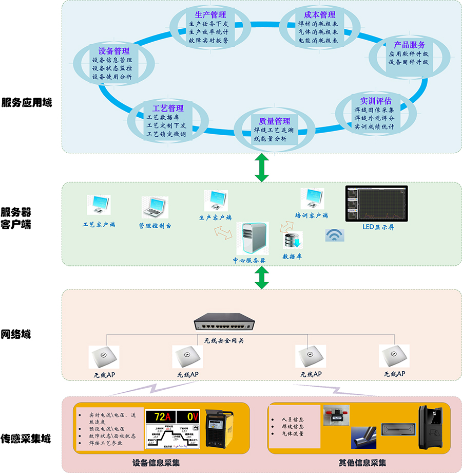工業(yè)設備數字化,信息網絡化已經不再是新鮮的課題,物聯(lián)網時代在工業(yè)領域悄然降臨。時代焊接設備的數字化,網絡化,智能化特質使其不再是一個單純的生產工具,而是數字化焊接生產現(xiàn)場的一部分。通過采集、控制、統(tǒng)計、分析焊接生產及焊接培訓的數據,為焊接生產管理者,焊接工藝管理者,焊接設備管理者、焊接培訓管理者提供了新的管理手段。