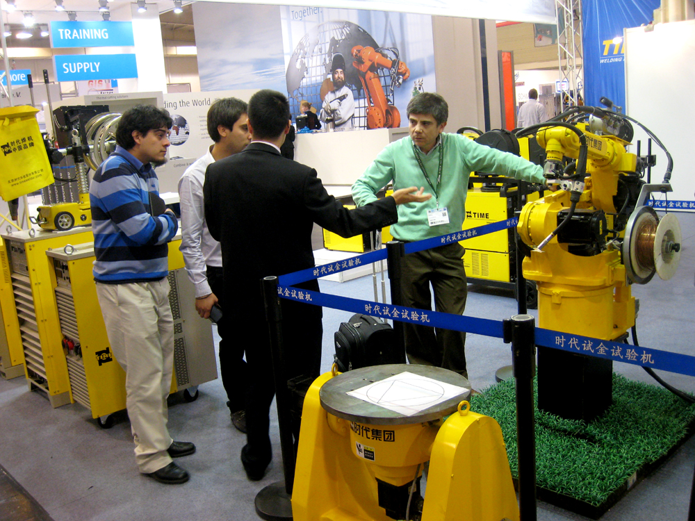 從2001年到2013年,時(shí)代公司連續(xù)參加了4屆德國(guó)埃森焊接展會(huì)。時(shí)代的展臺(tái)面積不斷加大,展品不斷創(chuàng)新,展品數(shù)量不斷增多。本屆展會(huì)時(shí)代公司展臺(tái)面積為54平米并進(jìn)行了特裝布置。在展會(huì)上時(shí)代公司重點(diǎn)展示了新型全數(shù)字焊機(jī),交直流雙絲埋弧,焊接機(jī)器人等產(chǎn)品。展品受到了現(xiàn)場(chǎng)觀眾的極大關(guān)注。從產(chǎn)品性能參數(shù)到外觀到價(jià)格,觀眾們都詳加詢問(wèn)。不時(shí)有觀眾索要資料并拍照。高端產(chǎn)品以及智能化、自動(dòng)化產(chǎn)品將是未來(lái)時(shí)代公司的主流產(chǎn)品。在這6天展會(huì)中,共有36個(gè)國(guó)家和地區(qū)的觀眾到時(shí)代展臺(tái)參觀交流。另外,還有來(lái)自世界各地的代理商參觀了時(shí)代展臺(tái)并進(jìn)行洽談。由于全球經(jīng)濟(jì)形勢(shì)持續(xù)低迷,所以本次展會(huì)總展位面積有所減少。原來(lái)預(yù)計(jì)參觀人數(shù)會(huì)減少,但是根據(jù)展后統(tǒng)計(jì)看,來(lái)時(shí)代展臺(tái)參觀交流的觀眾、代理商還是較多的。