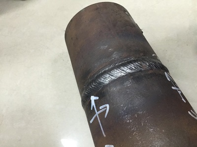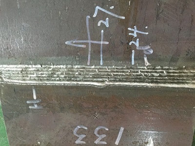 第一模塊由四組低碳鋼試件組成,10mm對(duì)接仰焊板(如圖1)、管管對(duì)接45度固定(如圖2)、16mm板橫焊(如圖3)和板立角焊(如圖4),焊接方法要根據(jù)抽簽確定,這四組低碳鋼試件中,從技術(shù)層面上講,全手工焊條焊接的仰焊板和45度管管對(duì)接焊難度較大,由于仰焊板在歷屆焊接技能大賽的賽項(xiàng)上都必不可少,所以在操作技能上各家都有所掌握,所比的是誰家的基本功更扎實(shí),技術(shù)掌握得更到位。45度管管對(duì)接電弧焊的難點(diǎn)個(gè)人認(rèn)為有兩點(diǎn),第一是打底階段每一個(gè)接頭的處理及焊接后在保證背面成型好的基礎(chǔ)上,焊縫正面是否有較深?yuàn)A溝或焊肉下垂的現(xiàn)象,從而影響蓋面后的焊縫內(nèi)在質(zhì)量。第二個(gè)難點(diǎn)是蓋面焊接要做到焊縫對(duì)咬邊的控制,通過焊接過程中的斜拉擺動(dòng)來控制好熔池走向,使焊肉不出現(xiàn)下垂和咬邊。從本次大賽的45度管管焊的總體成績(jī)來看,由于焊接過程中允許進(jìn)行電動(dòng)工具打磨處理,所以對(duì)于內(nèi)在質(zhì)量的控制都做得還不錯(cuò),65名選手中射線探傷0分的只有8人。選手中外觀分?jǐn)?shù)丟分的較多,滿分50分中,最高得分也只有36分,可見該項(xiàng)目還是有一定的難度。