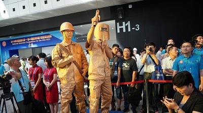 為了讓觀眾更加直觀地看到焊接工藝的全過程、同時宣傳國產技能裝備,主辦方在賽區(qū)外還特意設置了焊接展示區(qū)。展示區(qū)由時代公司負責規(guī)劃和布置展出,展區(qū)占地面積達200平米。