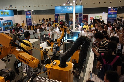 時代展區(qū)按展品的類型分為時代弧焊機器人設備、TD系列全數字焊機、焊接培訓模擬儀、焊接材料等四個主題,還提供了技師演示、咨詢接待、微信互動等服務。其中,焊接機器人、微信互動獨具魅力。時代微信打印機為觀眾定格美麗,時代機器人以其優(yōu)質精良的焊縫和精準高效的焊接動作折服了現場觀眾,令不少青年人躍躍欲試親自操控機器人動作。焊接培訓模擬儀也令人印象頗深。觀眾們紛紛參與演示活動,通過VR眼鏡體驗3D立體焊接畫面,實時觀測焊槍與焊接空間的距離,模擬真實的焊槍手感,同步立體顯示操作動作。
