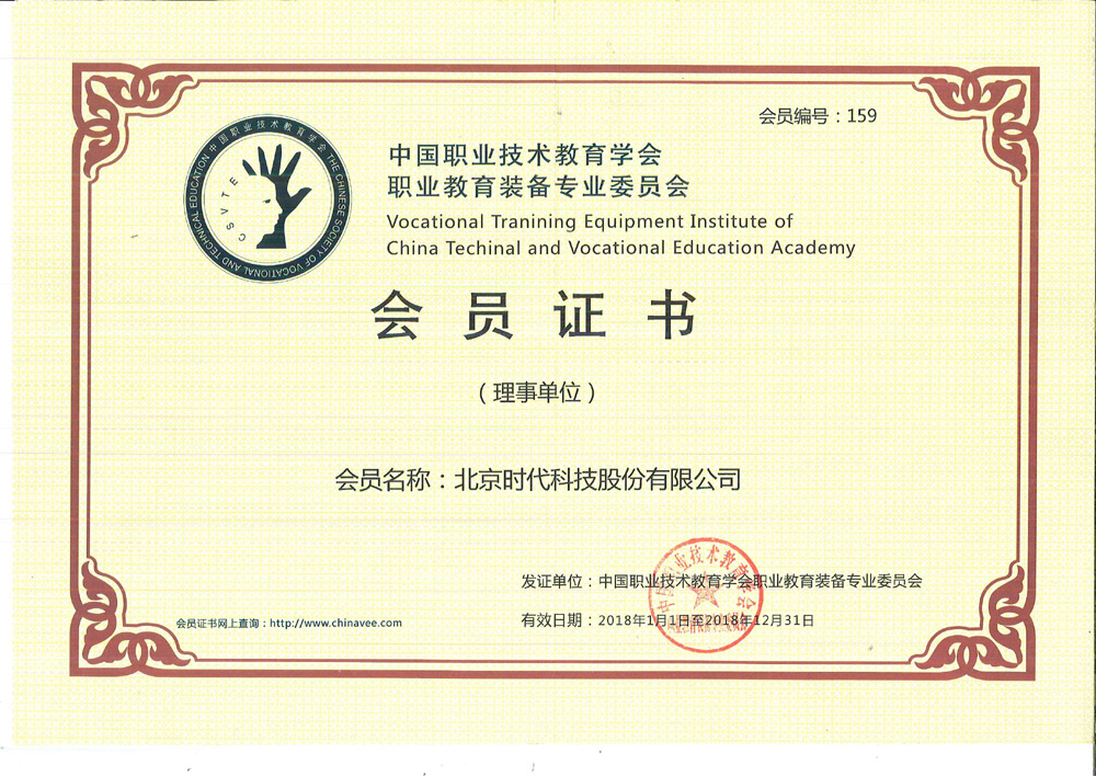 | 2018-01 | 中國職業(yè)技術教育學會職業(yè)教育裝備專業(yè)委員會會員證書 | 中國職業(yè)技術教育學會 |