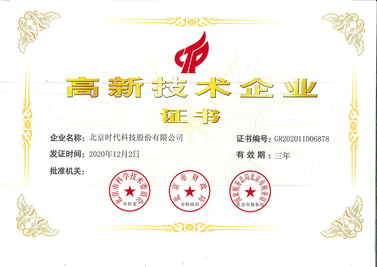 | 2020-12 | 高新技術企業(yè)證書 | 北京市科學技術委員會 |