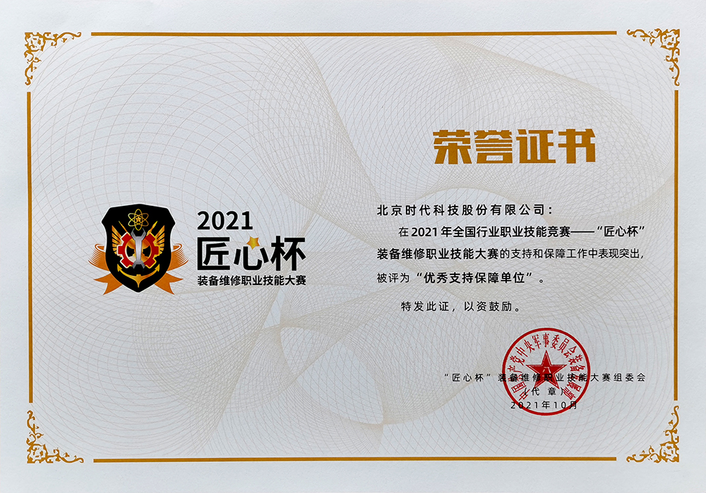 | 2021-12 | 2021年“匠心杯”裝備維修職業(yè)技能大賽證書 | 中國共產黨中央軍事委員會裝備發(fā)展部 |