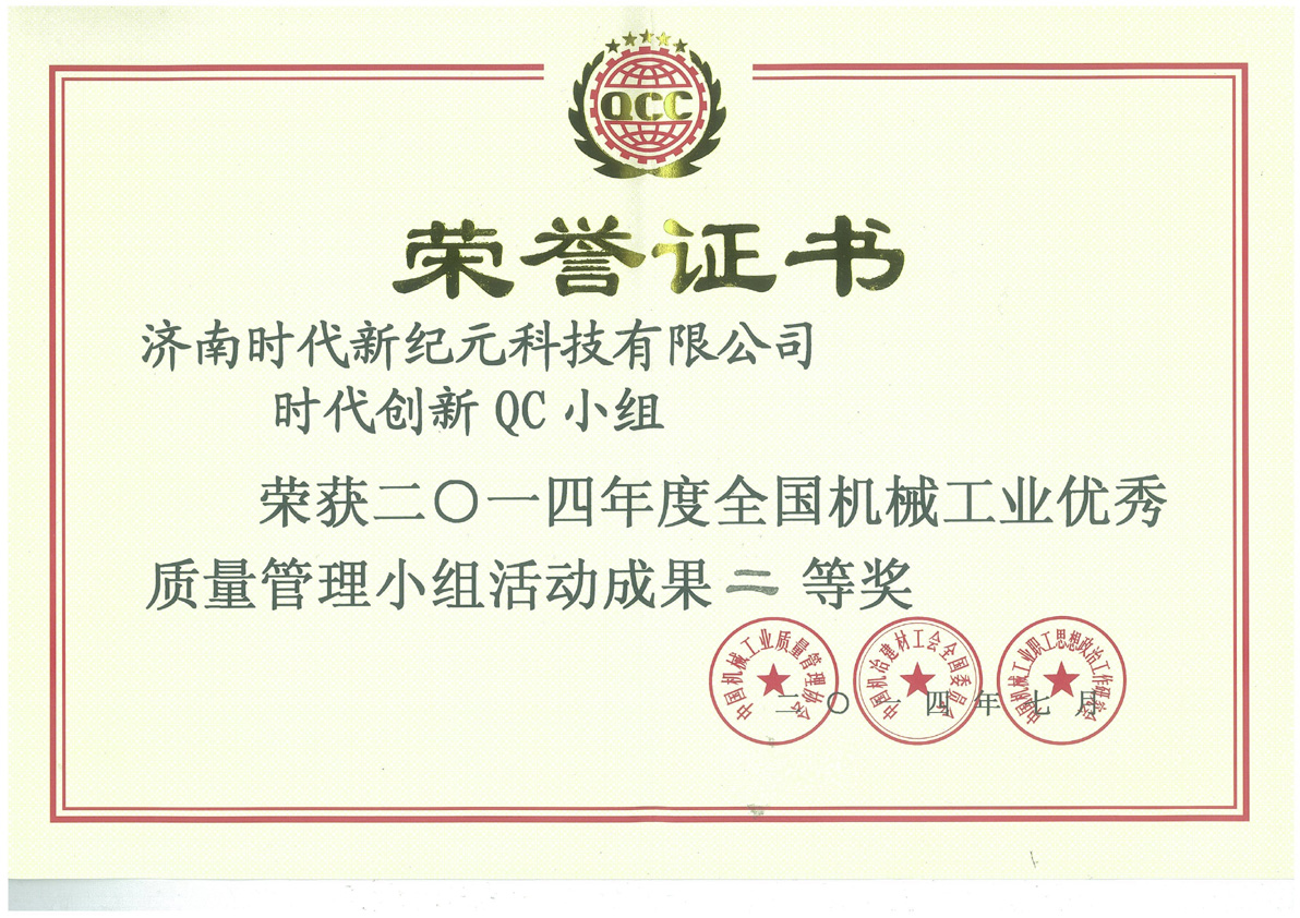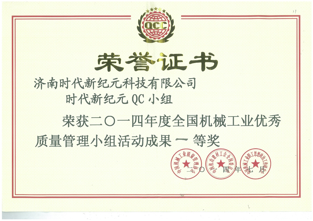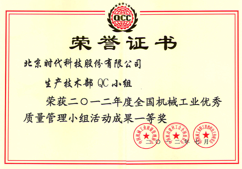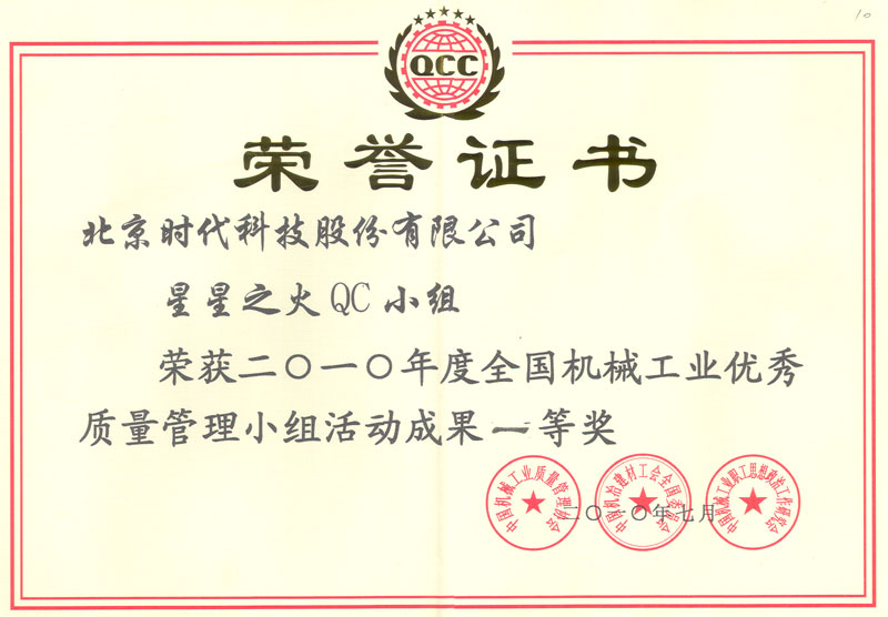 | 2010-07 | 全國機械工業(yè)優(yōu)秀質量管理小組活動成果一等獎 | 中國機械工業(yè)質量管理協(xié)會 |