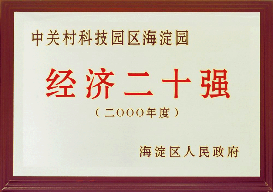 | 2002-04 | 中關村科技園區(qū) 2000 年度經濟二十強企業(yè) | 海淀區(qū)人民政府 |