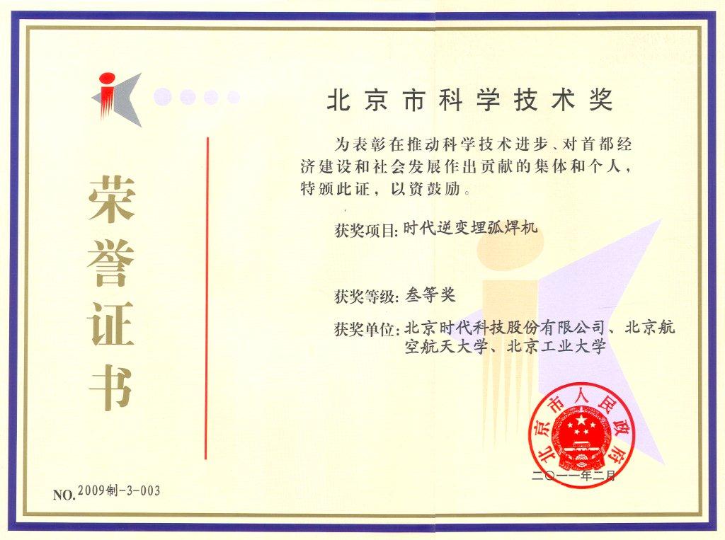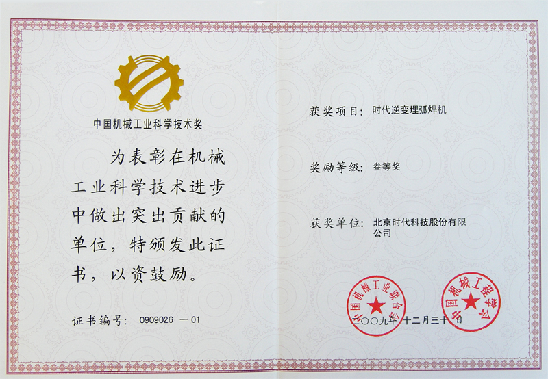 | 2009-12 | 中國機械工業(yè)科學技術獎 時代逆變埋弧焊機 | 中國機械工程學會 |