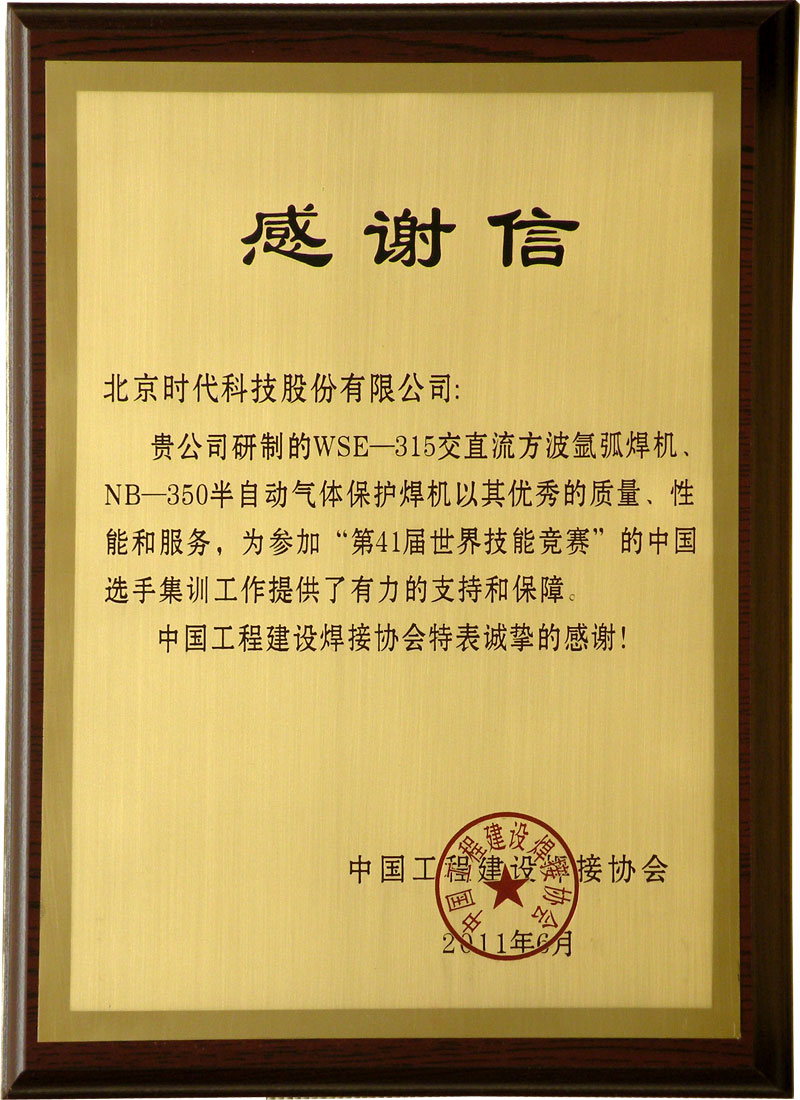 | 2011-06 | 參與世界技能大賽感謝信 | 中國工程建設焊接協(xié)會 |