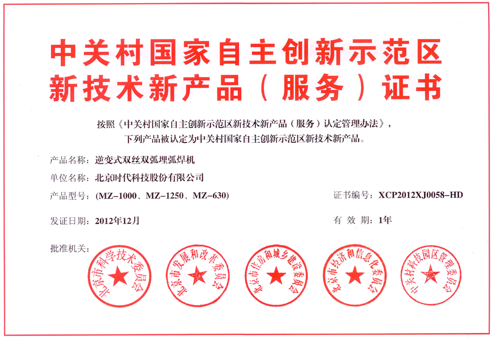 | 2009-07 | 北京市自主創(chuàng)新產品(逆變弧焊電源) | 北京市科學技術委員會 |