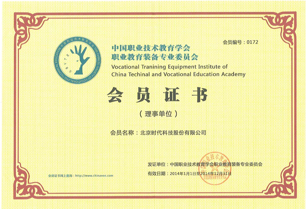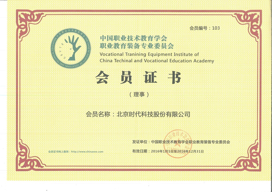| 2016-03 | 中國職業(yè)技術教育學會職業(yè)教育裝備專業(yè)委員會會員證書 | 中國職業(yè)技術教育學會職業(yè)教育裝備專業(yè)委員會 |