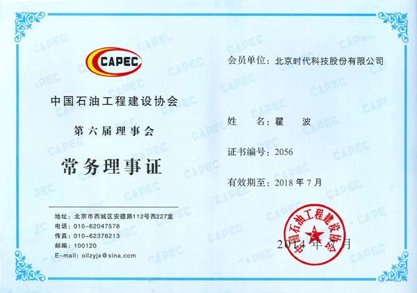 | 2014-08 | 中國石油工程建設協(xié)會常務理事證 | 中國石油工程建設協(xié)會 |