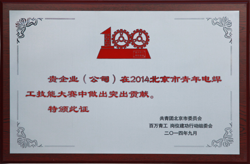 | 2014-12 | 北京市青年電焊工技能大賽 突出貢獻獎 | 共青團北京市委員會 |