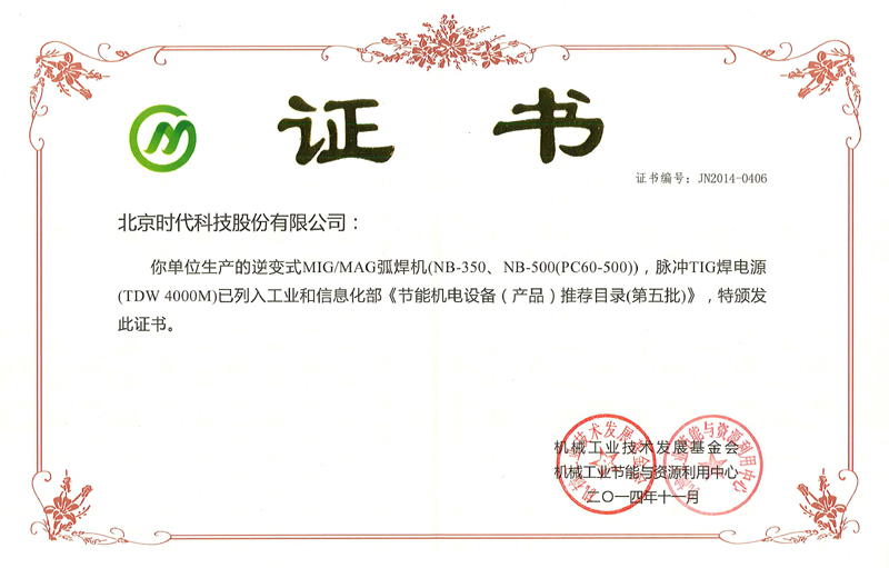 | 2015-01 | 工業(yè)和信息部《節(jié)能機電設備推薦目錄》證書 | 機械工業(yè)技術發(fā)展基金會 |