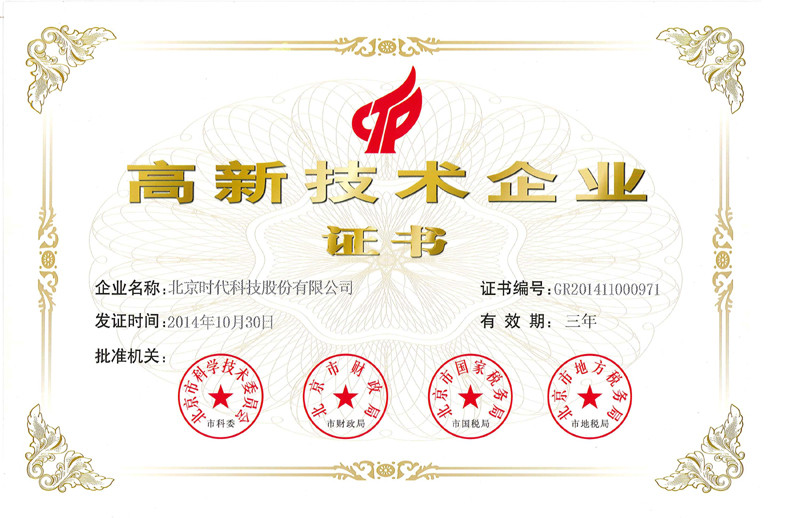 | 2015-01 | 高新技術企業(yè) 證書 | 北京市科學技術委員會 |