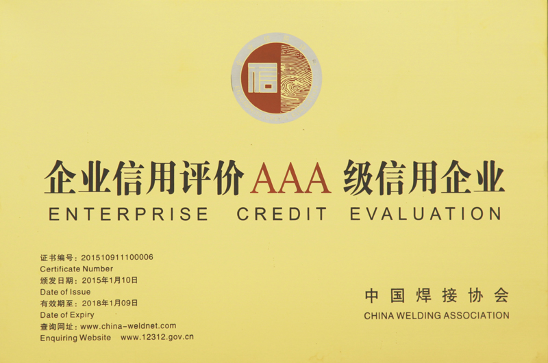 | 2015-03 | 企業(yè)信用評價AAA級信用企業(yè) | 中國焊接協(xié)會 |