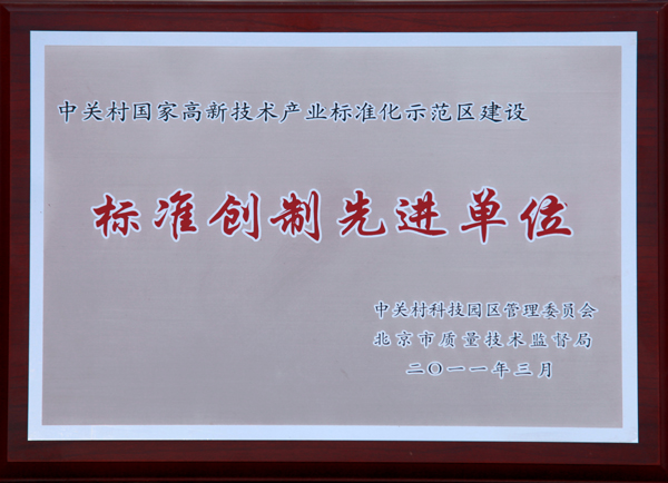 | 2011-03 | 標準創(chuàng)制先進企業(yè) | 中關村科技園區(qū)管理委員會 |