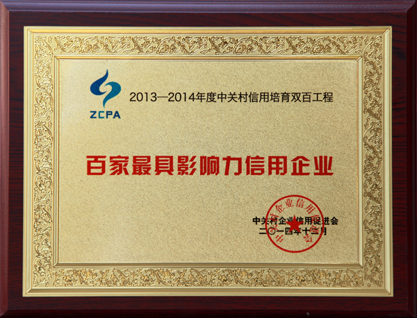 | 2014-12 | 百家最具影響力信用企業(yè) | 中關村企業(yè)信用促進會 |
