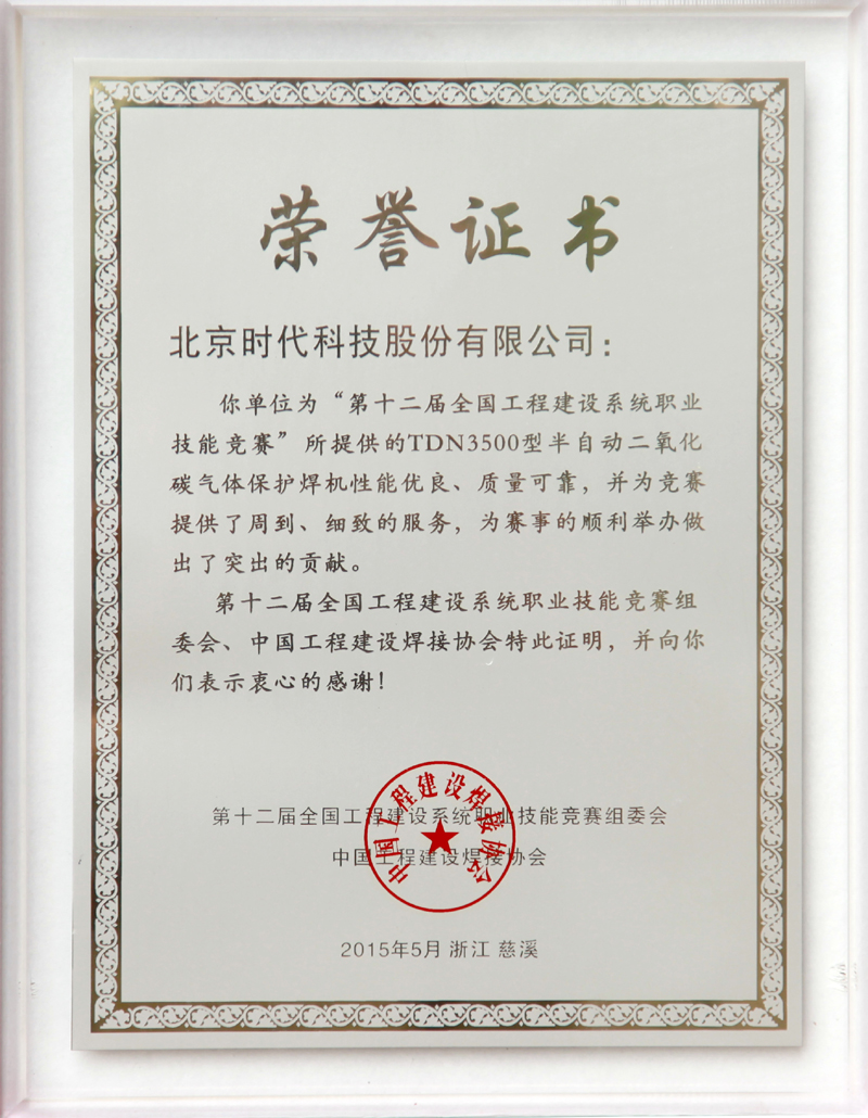 | 2015-05 | 第十二屆全國工程建設系統(tǒng)職業(yè)技能競賽榮譽證書 | 中國工程建設焊接協(xié)會 |