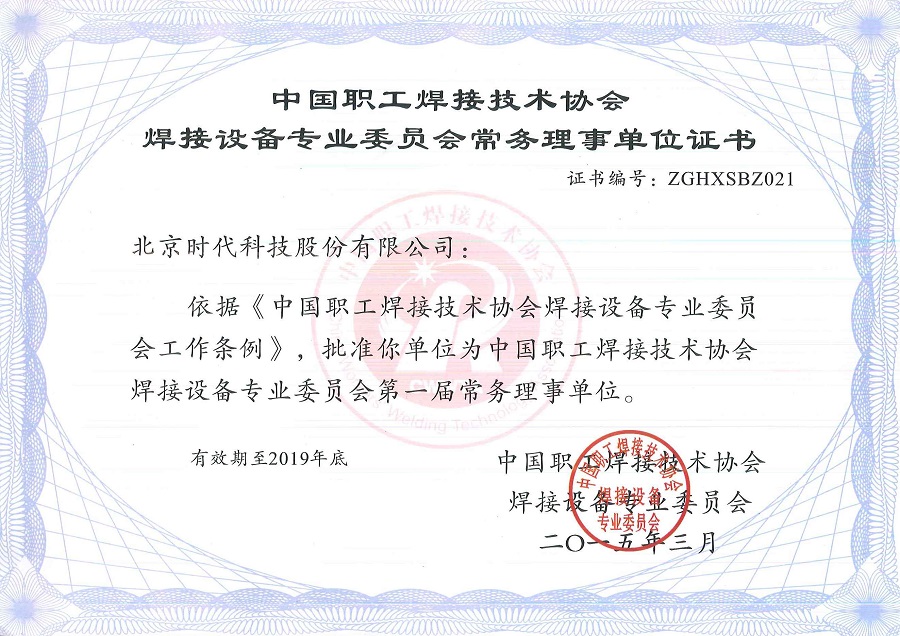 | 2016-04 | 中國職工焊接技術協(xié)會 焊接設備專業(yè)委員會常務理事單位證書 | 中國職工焊接技術協(xié)會 焊接設備專業(yè)委員會 |