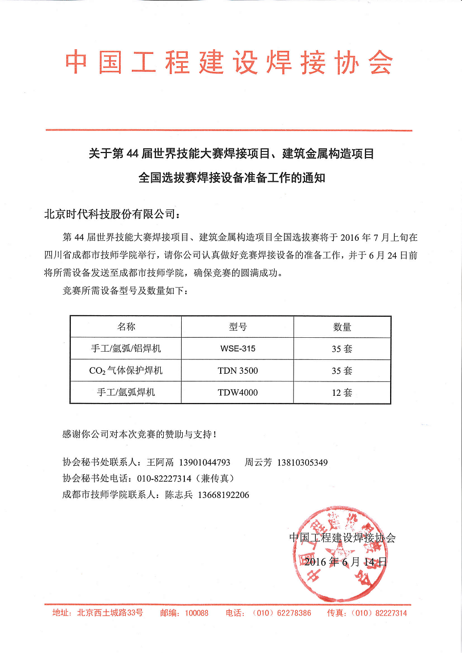 | 2016-06 | 第44屆世界技能大賽焊接項目、建筑金屬構造項目全國選拔賽唯一指定用機 | 中國工程建設焊接協(xié)會 |
