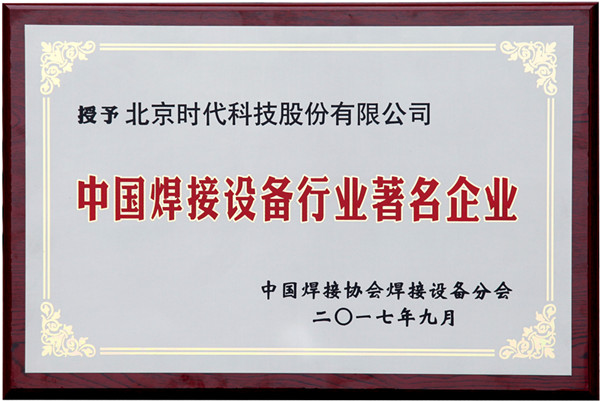 | 2017-09 | 中國焊接設備行業(yè)著名企業(yè) | 中國焊接協(xié)會焊接設備分會 |