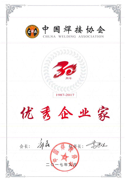 | 2017-09 | 中國焊接協(xié)會 優(yōu)秀企業(yè)家 | 中國焊接協(xié)會 |